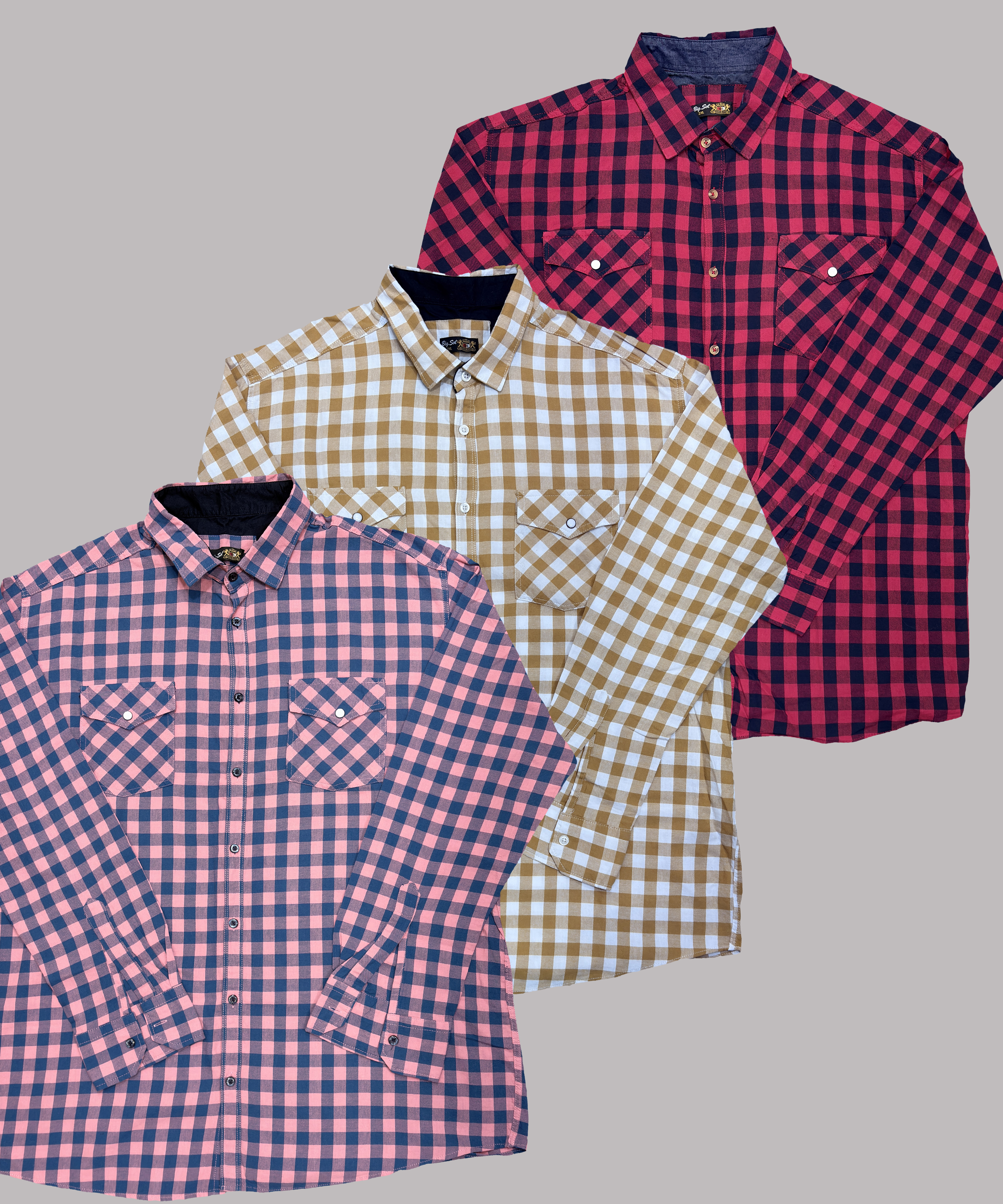 پیراهن سایزبزرگ مردانه آستین بلند نخپنبه دوجیب چهارخانه