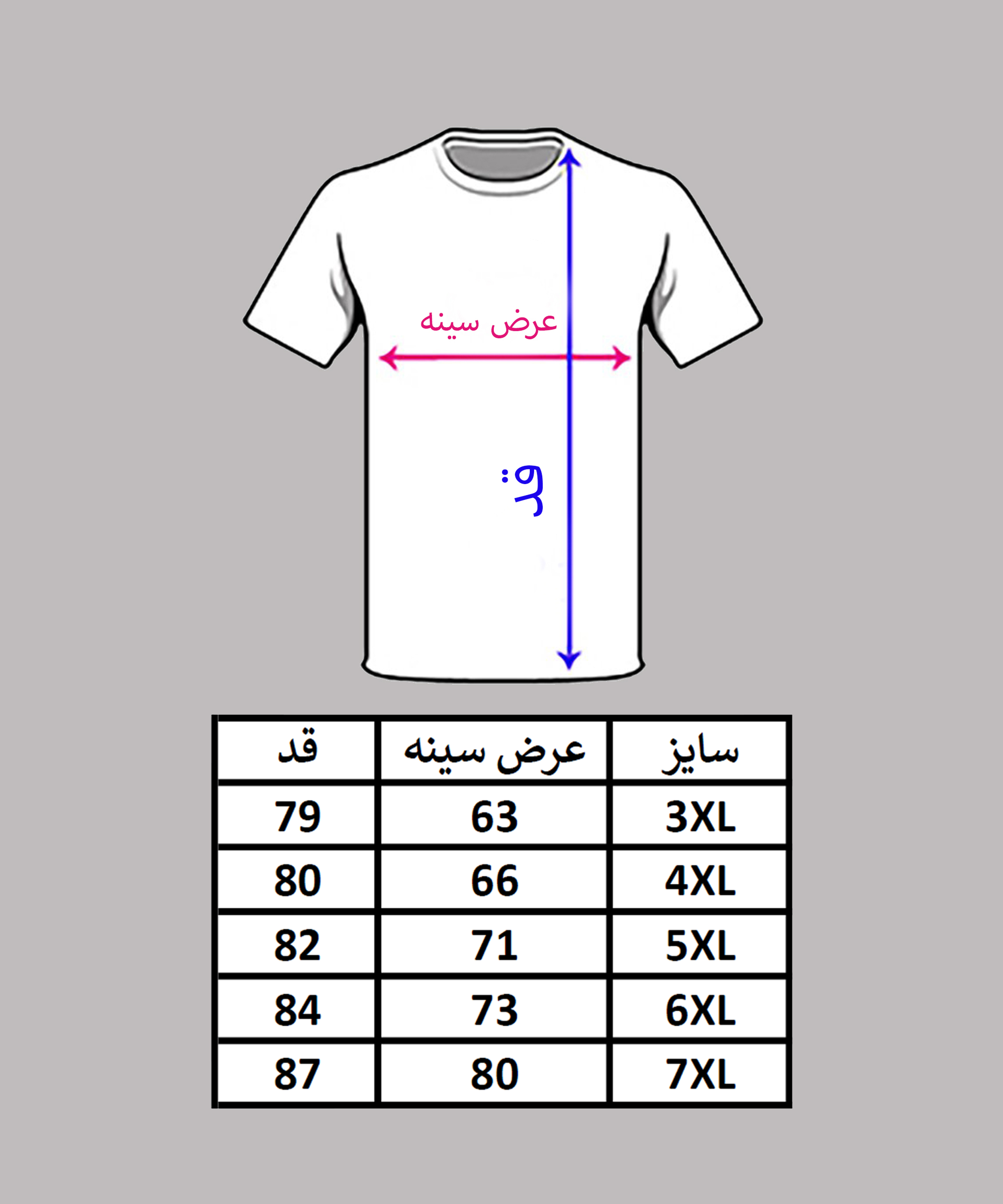 این تیشرت در سایزبندی ۳XL تا ۷XL تولید شده تا آقایان سایز بزرگ بتوانند با اطمینان از فیت مناسب، استایل مرتب و دلخواه خود را داشته باشند.